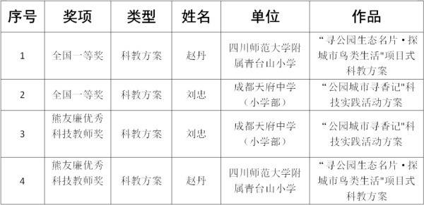 11月16日,由中国青少年科技教育工作者协会主办的2025年全国青少年科技教育创新成果大赛在华中师范大学落下帷幕。成都市科技创新服务中心选送的两件作品经四川省青少年科技中心、四川省青少年科技教育协会推荐参加全国决赛,最终荣获两项全国一等奖、两项专项奖。